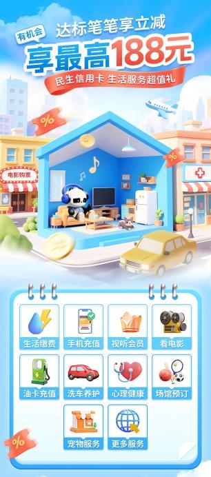 其中,中国民生银行信用卡中心(以下简称“民生信用卡中心”)与京东、抖音、支付宝、携程等头部平台联动,推出“一键绑卡赠支付礼包”和“聚惠民生日”活动。