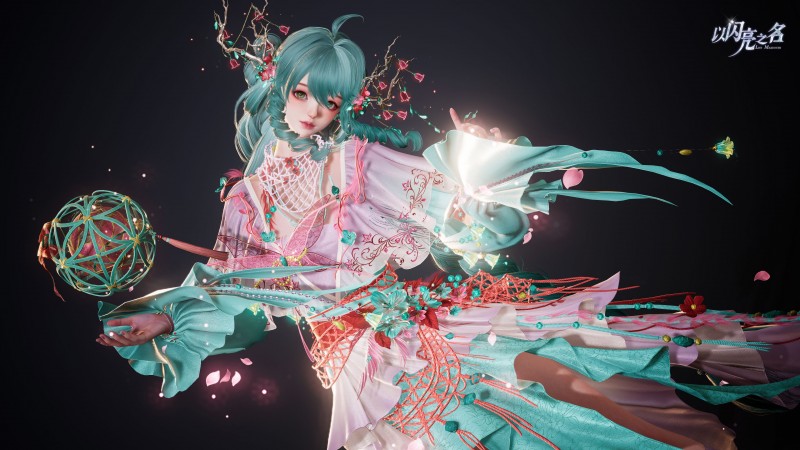 作为核心元素的非遗滚灯,堪称整套时装的灵魂,象征着团圆、光明与永恒,常出现在节庆仪式中,承载着人们对美好生活的祈愿。铃梦清音五星时装中的滚灯设计,精准复刻了滚灯旋而不灭的绝技,精巧的球体结构无论如何旋转,内里的火光始终保持平衡,这种物理平衡的设计,既还原了非遗技艺的巧思,也暗合了初心不改的精神内核。球内自发光的闪烁光球源源不断散发光点粒子,吸引着身体发光的蛾子环绕飞舞,蛾子微光与球内光点交织,织就一幅极具东方神秘色彩的灵动画面,让滚灯不再是冰冷的道具,而是有生命的祈愿载体。
